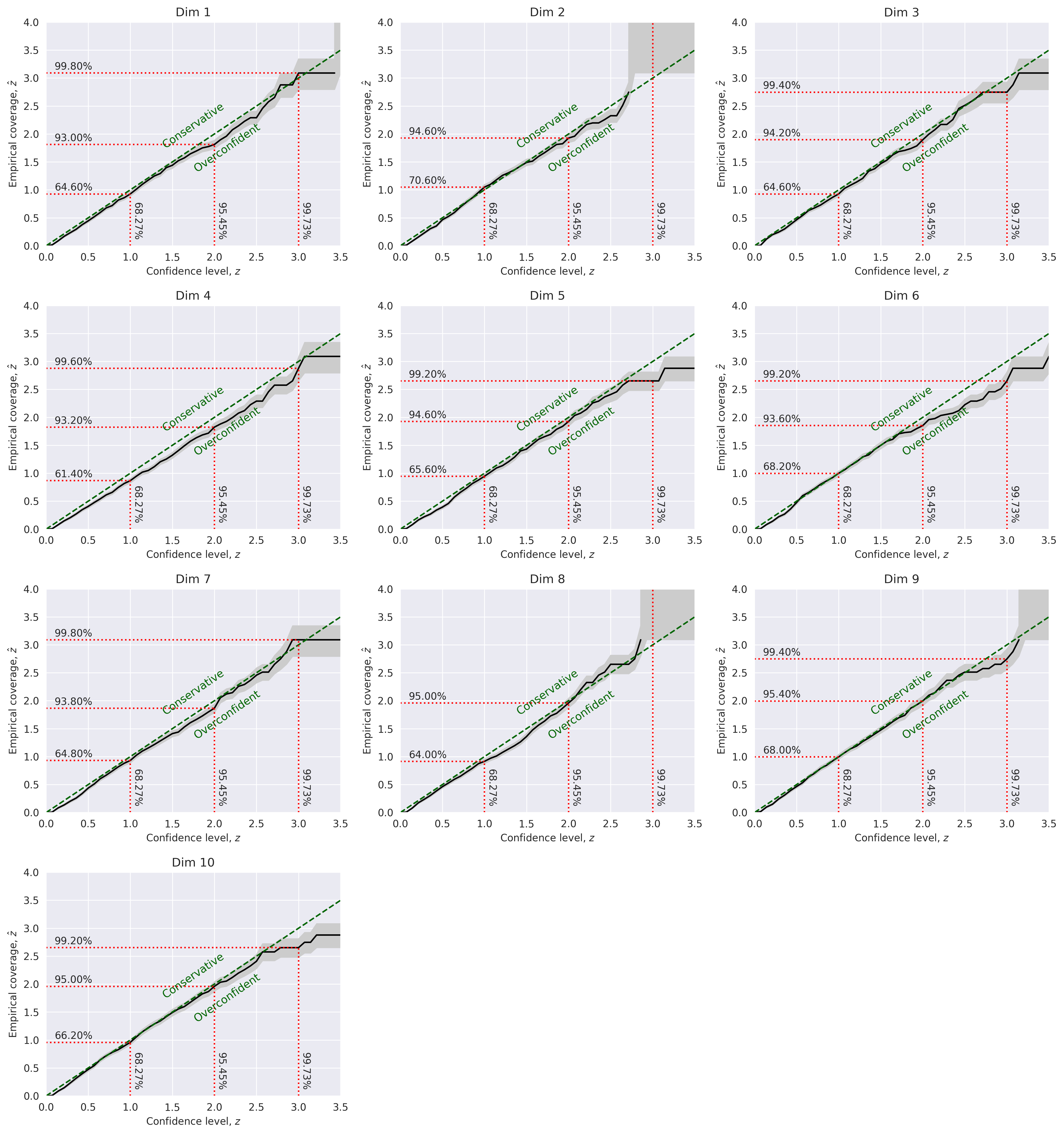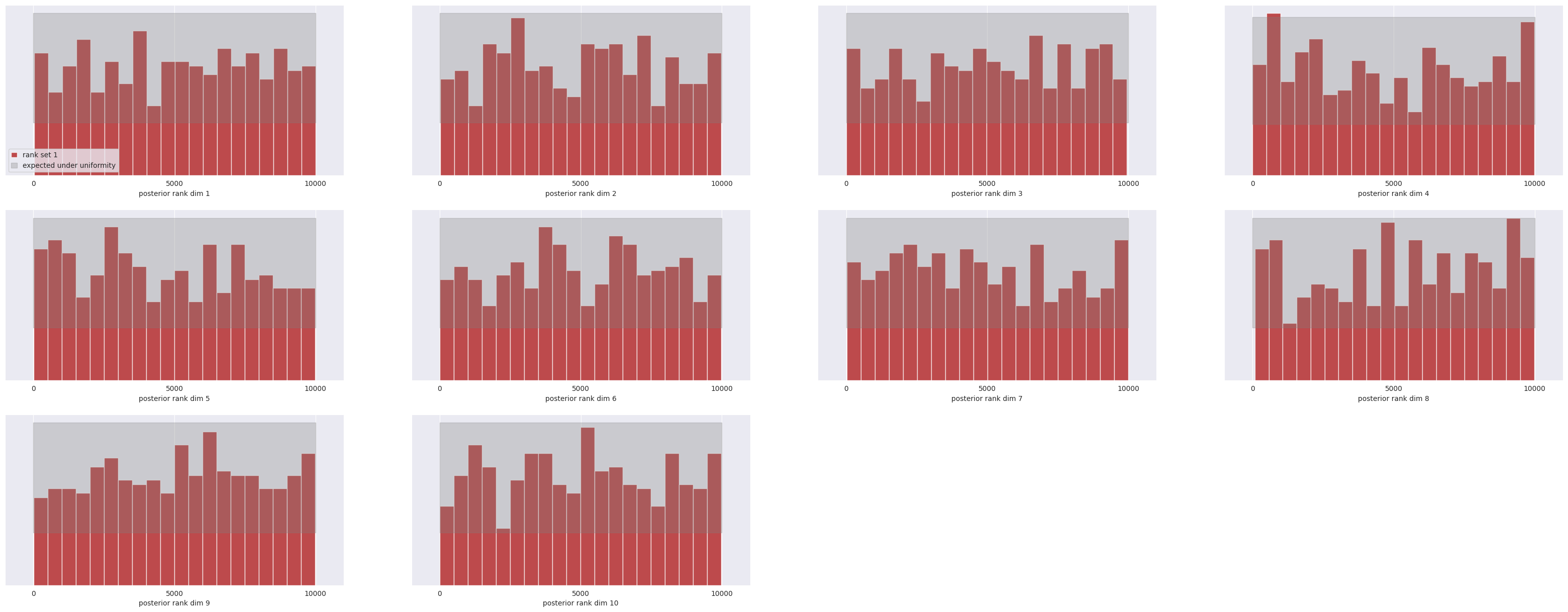 We report here the results of the posterior calibration tests. As an excercise, you can implement the tests as in the Two Moons example and compare the results.